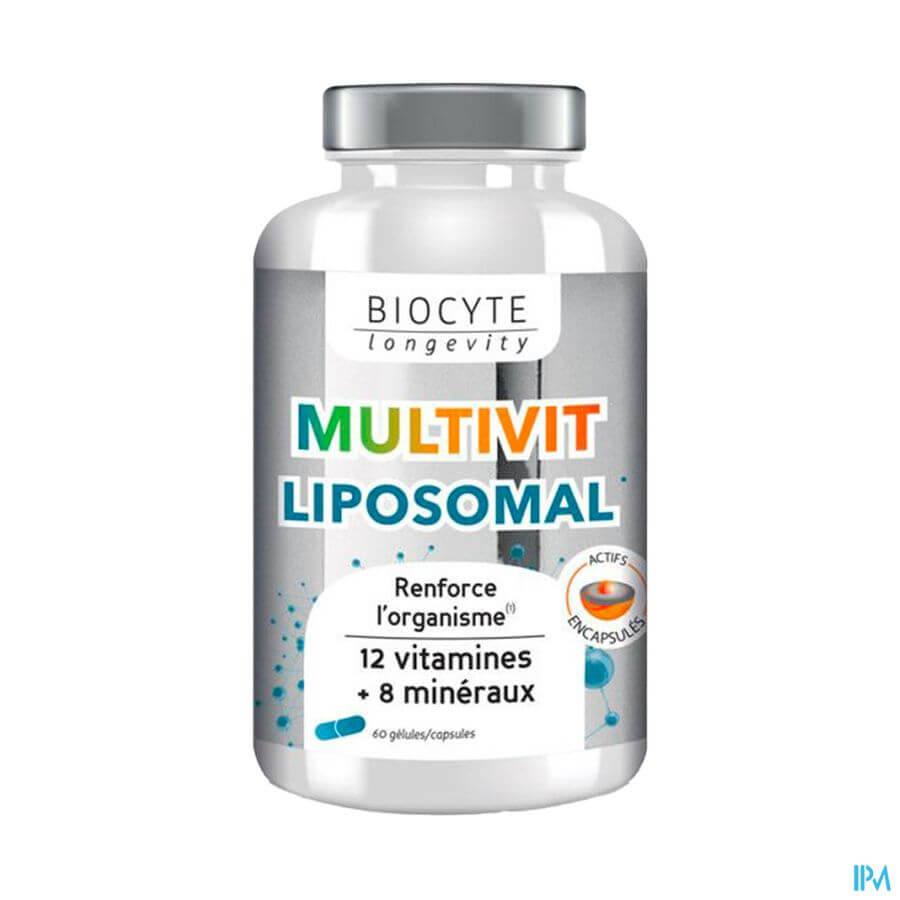 Biocyte Multivit Liposomal Caps 60 est un complément alimentaire disponible en pharmacie. Il ne peut se substituer à un mode de vie sain et à une alimentation variée et équilibrée. Ne prenez pas plus que la dose quotidienne recommandée indiquée sur l'emballage. Demandez conseil à votre pharmacien. Tenir hors de portée des enfants.